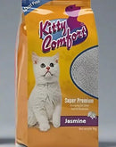 Kitty Comfort cat litter is a 5 kg bag of clumping litter with a subtle jasmine scent. Its premium formula traps bad smells and cat waste quickly and efficiently, creating a comfortable and hygienic environment for cats and their owners. Its natural odour elimination technology ensures long-lasting freshness, so you can always have peace of mind.