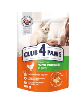 CLUB 4 PAWS PREMIUM FOR KITTENS "WITH CHICKEN IN GRAVY". СOMPLETE CANNED PET FOOD