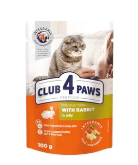 CLUB 4 PAWS PREMIUM "WITH RABBIT IN JELLY". СOMPLETE CANNED PET FOOD FOR ADULT CATS