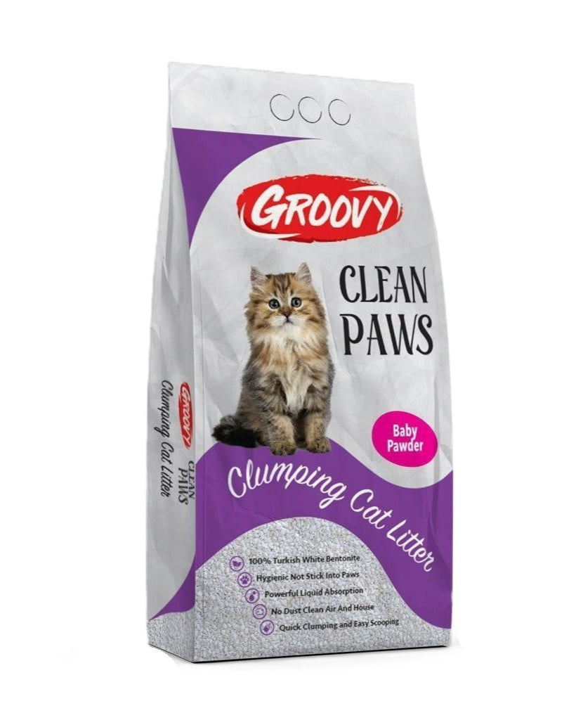 Groovy Clean Paws Clumping Cat Litter- Baby Powder Scented 10 L