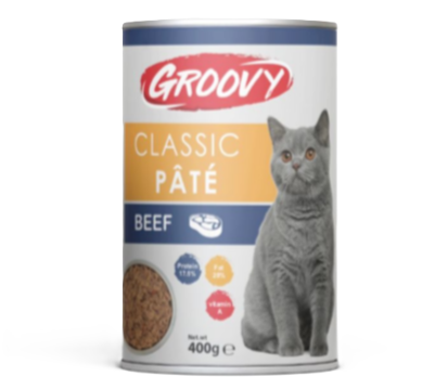 Groovy classic pate' cat wet food 400 gm provides a complete and balanced meal for your pet. This wet food is made with an innovative formula using high-quality ingredients that provide your cat with essential nutrients. It con...