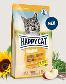 Our Happy Cat Minkas Hairball Control contains special crude fibres. These help to minimise hairballs and encourage gentle elimination via the gastrointestinal tract. This balanced complete diet is perfect for adult cats and provides your four-legged friend with everything she needs for a long and healthy life. Our recipe with its high proportion of valuable animal proteins is 100% balanced and natural. This tasty dry food contains lots of vitamins and minerals to support the immune system. And of course our recipes contain no artificial flavours or preservatives.
